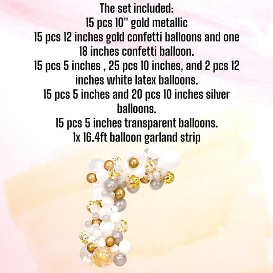 Gray White Gold Confetti Balloons Arch Garland Kit Wedding Balloon Decor
