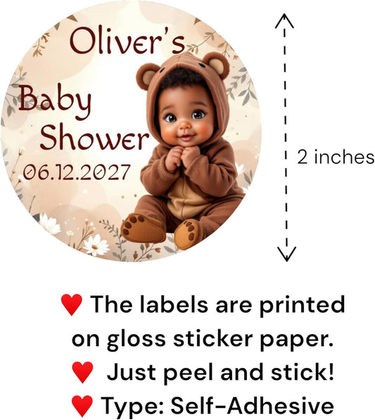 Personalized Teddy Bear Baby Boy Labels – Custom Name Stickers for Baby Shower or 1st Birthday Party Favors