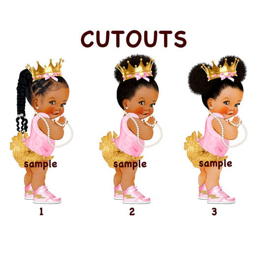 Cutouts Princess Pink & Gold Sneakers Ruffle Pants African American Baby Shower
