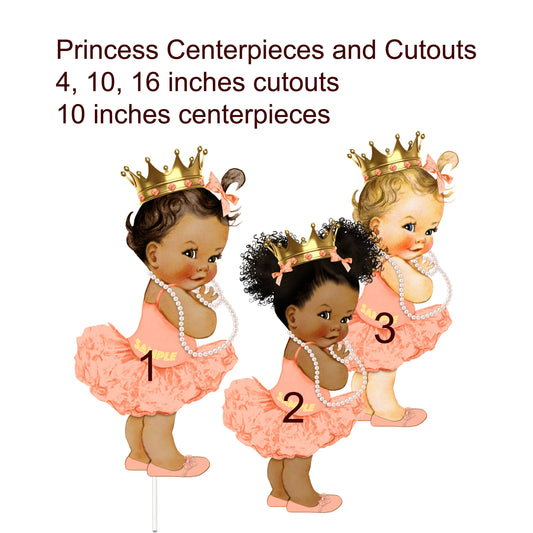Peach Theme Little Princess Centerpiece Cutouts, Topper Baby Shower 1st Birthday Table Decoration