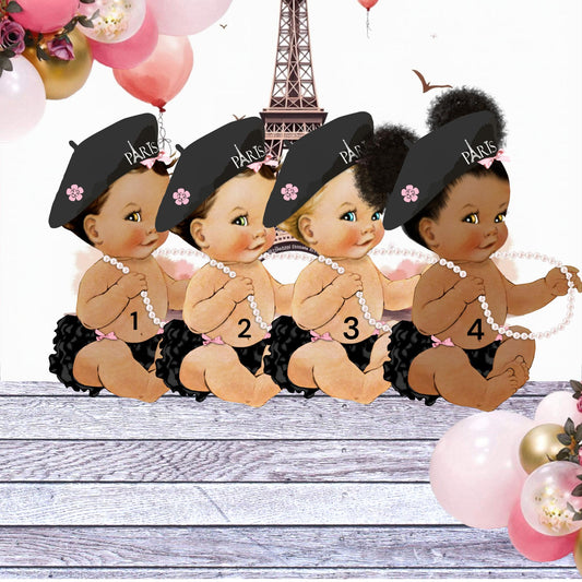 Paris Baby Girl Shower Cake Topper Table Centerpiece - Sitting Girl Paris Theme Party Decorations - 1st Birthday Cake Topper Wall Cutouts