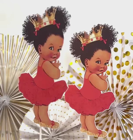 Princess Ballerina Braids Centerpieces Pink Gold Sneakers Ruffle Pants African American Baby Shower