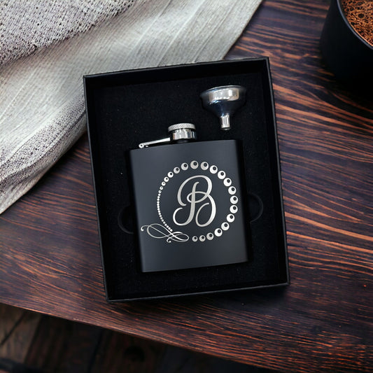 Personalized Hip Flask Laser Engraved Small Groomsman Boyfriend Flask with Gift Box, Custom Name Monogram Initial Capital Letter