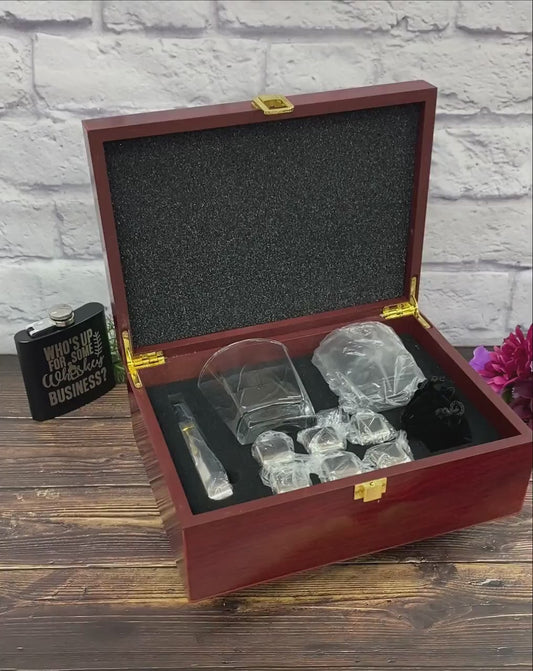 Personalized Whiskey Stones Glass Set Pine Wood Gift Box Girl Groomsmen Father Husband Gift