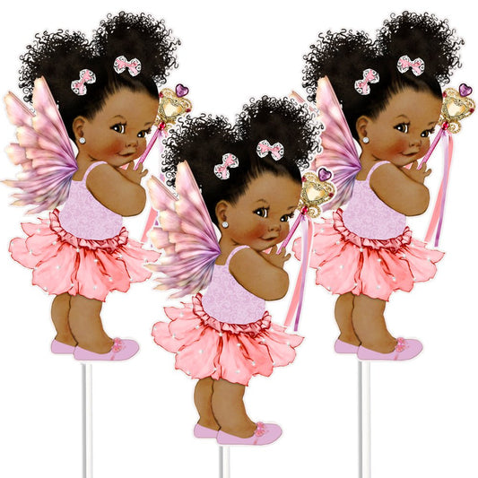 3 Fairy Centerpieces for Table, African American Double-Sided Fairy Birthday Table Decor