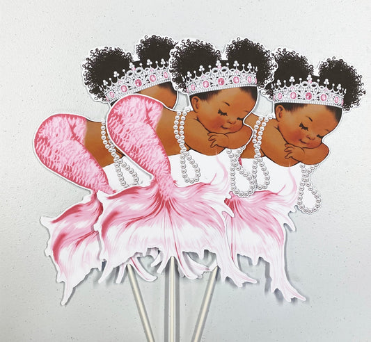 Purple Sleeping Mermaid Cutouts Centerpieces African American Shower Birthday Decor