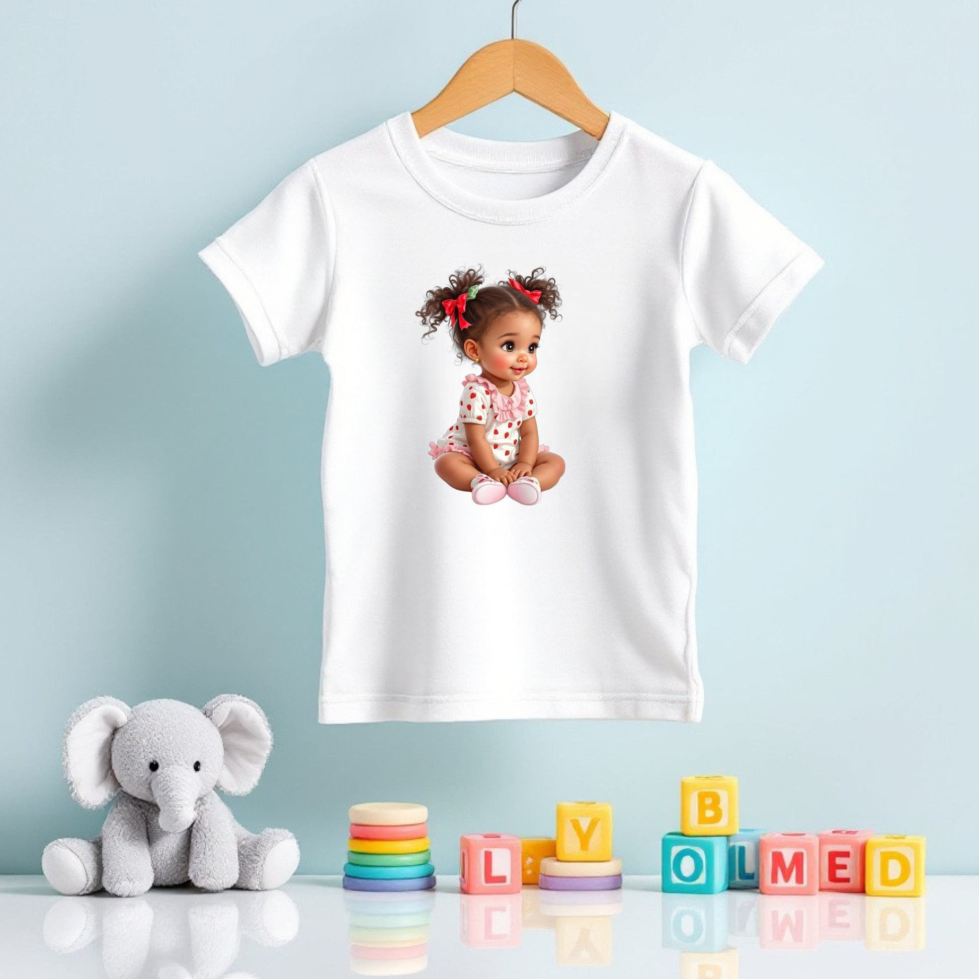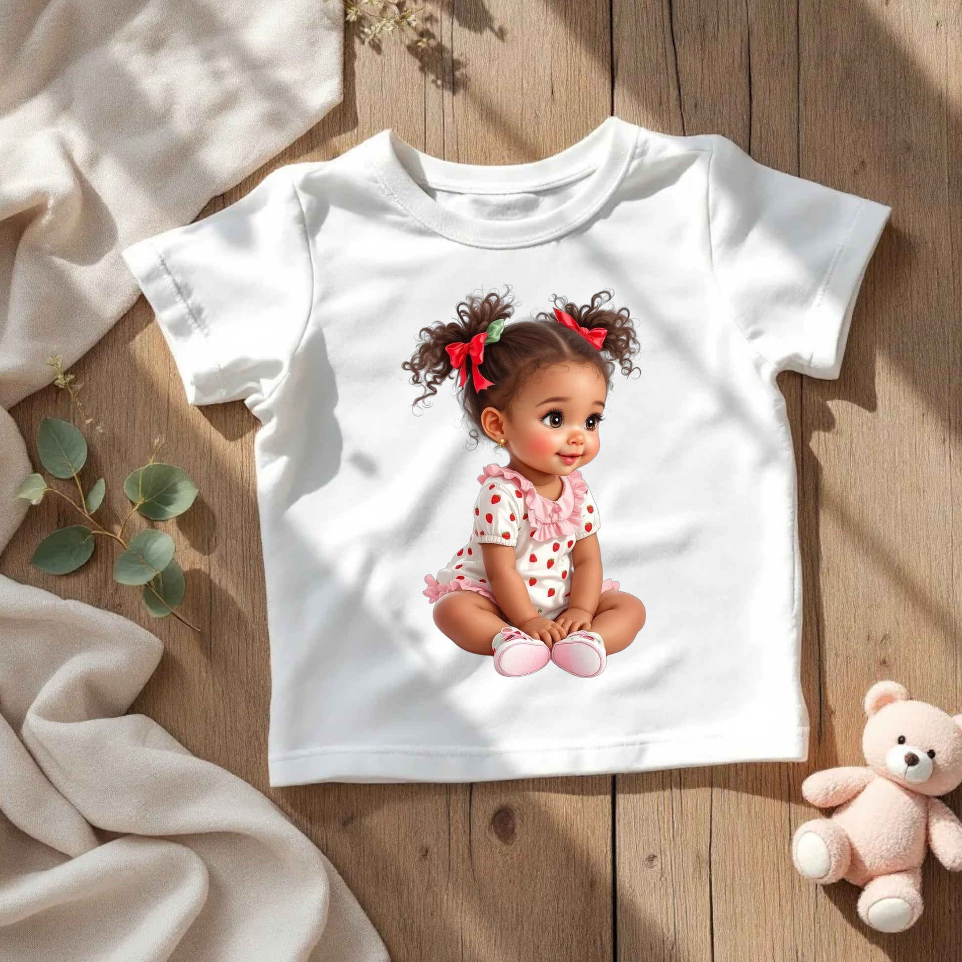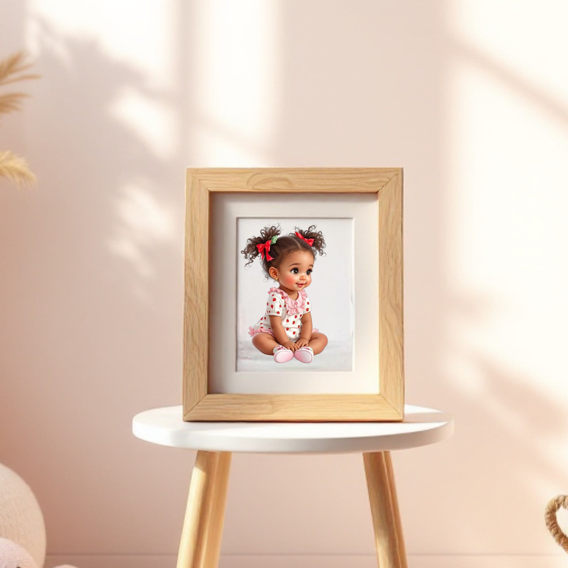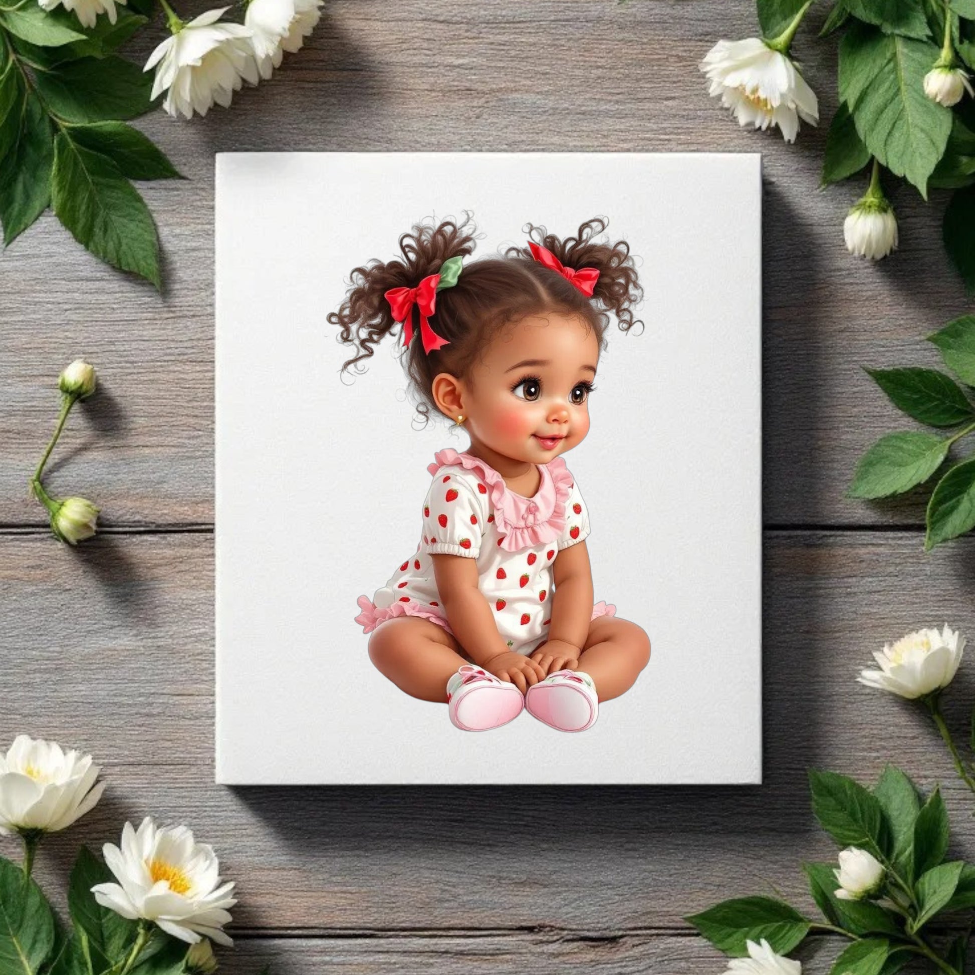 Strawberry African American Baby Girl Digital Clipart