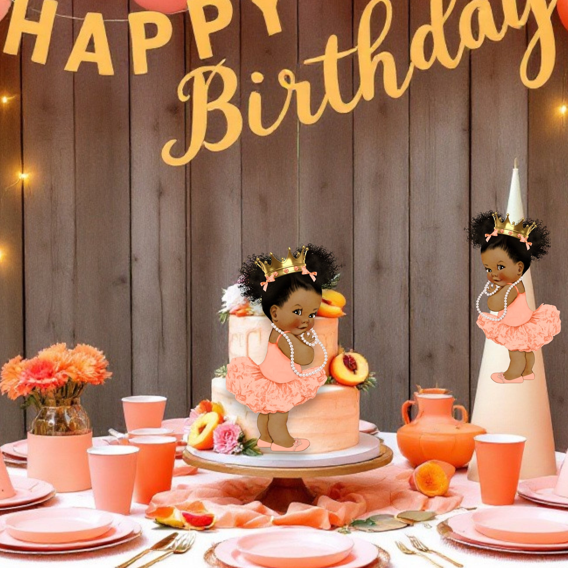 Peach baby girl cutouts are perfect for a princess's birthday, a royal baby shower, and more.