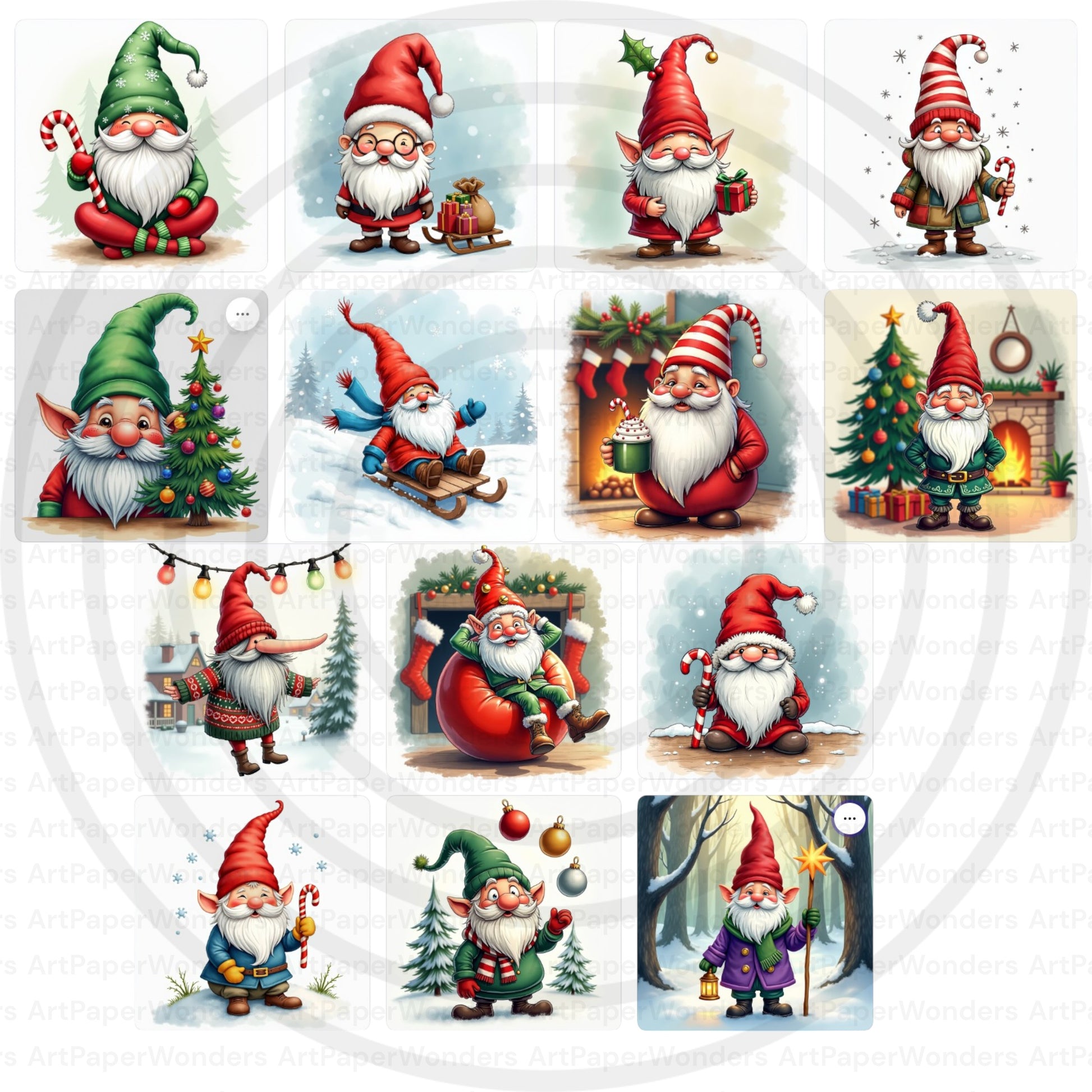 Enhance your holiday designs with our Whimsical Gnome Christmas Clipart Bundle! This bundle includes 13 high-quality JPG graphics perfect for card making and festive projects. Add a touch of whimsy to your holiday creations with our holiday graphics.